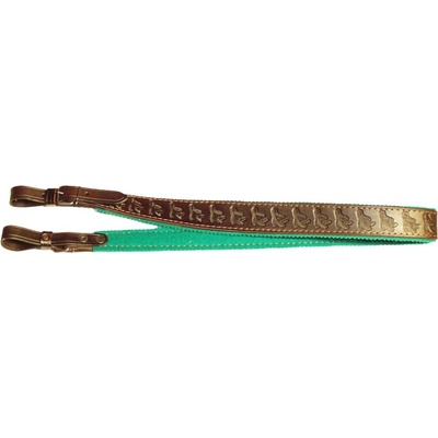 Řemen na pušku zdobený, široký 2,5 cm, podšitý gumou proti skluzu.