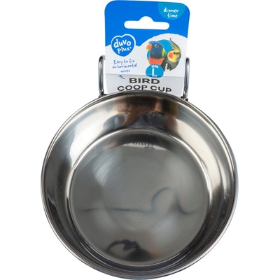 Nerez S háčky Vhodné pro ptáky Snadno se instaluje Nerezový kotlík s háčkem pro ptáky Duvoplus coop cup je odolná nerezová miska. Háčky usnadňují umístění do ptačí klece.