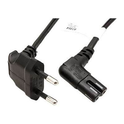 Napájecí kabel dvoužilový s lomenými konektory.; Použití: Pokud potřebujete zapojit zařízení s konektorem IEC320 C8 (2 kulaté kontakty) k rozvodné síti, použijte tento kabel....