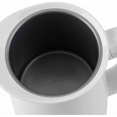 Napěňovač mléka s volbou napěnění mléka s ohřevem i bez. Šlehací a míchací metla. Dvojitá stěna s nerezovým vnitřkem s nepřilnavým povrchem ILAG. Odnímatelný podstavec STRIX.