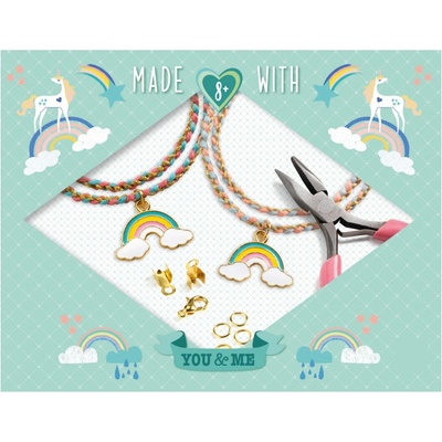 Kreativní sada na výrobu šperků z kolekce Me&You od francouzské značky Djeco. Vyrob dárek pro sebe nebo svou kamarádku podle tradičního japonského umění kumihimo. Roztomilá sada na výrobu dvou "duhových" náramků z lásky je dodávána v krásně ilustrované krabičce .