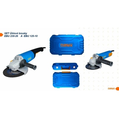 Výhodná sada dvou vysoce výkonných úhlových brusek Narex EBU 230-26 a EBU 125-10 pro náročné řezání a broušení kovových i stavebních materiálů. Úhlová bruska Narex EBU 230-26 -...