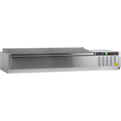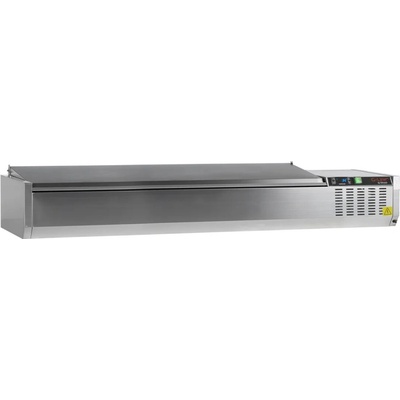 Stolní chladicí nástavba s nerezovým víkem | 7× GN1/4 TEFCOLD GVC33-150 S/S je profesionální stolní chladicí nástavba vybavená nerezovým ochranným víkem a konstruovaná pro...