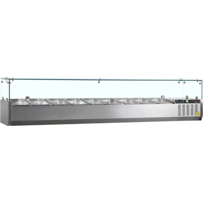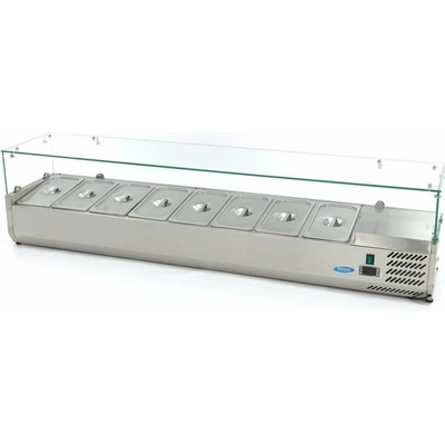 Pultová chladicí nástavba 180 cm pro 8 x 1/3 GN se skleněným zákrytem Pultová chladnička Maxima 180 cm je elegantní a robustní stolní saladeta ideální pro restaurace, hotely či...