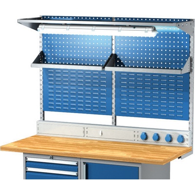 Vyrobeno z europerfo a eurobox panelů a nosníků z plechu. Umožňuje rozšíření pracovního stolu. Nástavba umožňuje uskladnění většího množství nářadí a materiálu. Vybaveno...