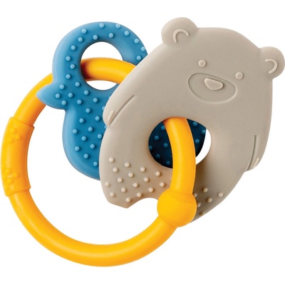 Silikonové kousátko, složené ze tří různých částí, zmírní bolest při prořezávání prvních zoubků. Může být použito i jako jednoduché chrastítko a také díky svému tvaru a designu...
