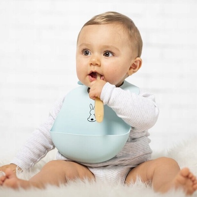 Nattou Silikonový bryndák se sponou Bryndák Nattou z pružného silikonu s roztomilým motivem zajíčka a praktickou kapsou vám zpříjemní krmení nebo samostatné stolování vašeho...