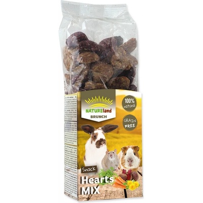 Pochoutka NATURE LAND Brunch srdíčka mix - Mix bezobilných srdíček pro králíky a hlodavce. - Doplňkové krmivo pro králíky a hlodavce. Drobné pamlsky ve tvaru srdíček jsou...