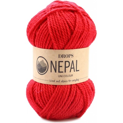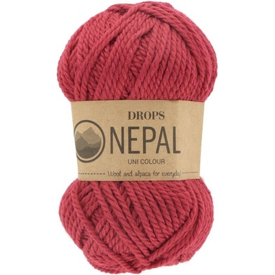 Drops Nepal Uni 3620 červená. Složení: 65 % vlna, 35 % alpaka. Návin: cca 75 metrů. Hmotnost: 50 g. Háček / jehlice: 5 mm. Zkušební vzorek: 10 x 10 cm = 17 ok x 22...