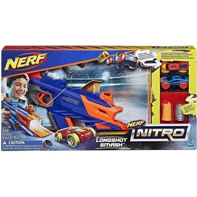 NERF NITRO LONGSHOT SMASH Užij si nevšední zábavu s Nerf Nitro blasterem Longshot Smash! Blaster je v balení dodáván se 4 překážkami, které si můžeš nastavit podle sebe a sestavit si tak super dráhu. Střílej pěnová autíčka na rampu a vytvářej tak nejšílenější...