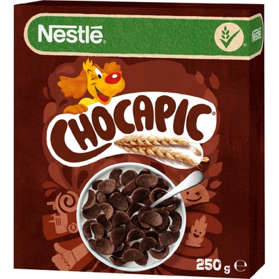 Cereální lupínky CHOCAPIC s čokoládovou chutí. Chocapic jsou cereální lupínky s čokoládovou chutí, které obsahují celozrnnou mouku a jsou zdrojem vlákniny. Neobsahují palmový...