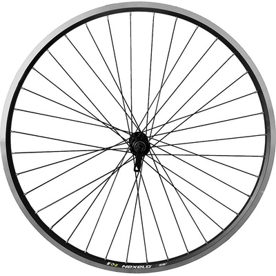 Typ 28" přední Ráfek NEXELO Al 622x19mm, dvoustěnný, broušený Náboj Al rychloupínací Ložiska Průmyslová Barva drátů Chromová Niple Mosaz...