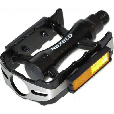Pedály NEXELO, broušené CNC, hliníkové Hliníkové tělo pedálů je zbroušené CNC frézou, protiskluzový povrch s odrazkami zvyšujícími bezpečnou jízdu v nepříznivém počasí....