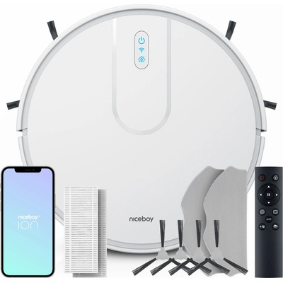 Niceboy ION Charles i4 White Niceboy Robotický vysavač Niceboy ION Charles i4 podlahu nejen skvěle vysaje se systémem Hurricane PRO, ale zároveň i vytře díky funkci mopování. S mobilní aplikací Niceboy ION vyřídíte úklid během vteřiny ze svého mobilního telefonu....