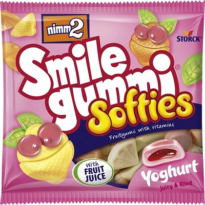 -- Nimm2 Smile Gummi Souf.Ovocné želé bonbony s příjemně kyselým obalem a šťavnatou ovocnou chutí. Kombinují sladko-kyselý zážitek s obsahem ovocné šťávy a vitamínů. Praktické 100g balení je ideální na cesty, do práce i jako malá sladká odměna.