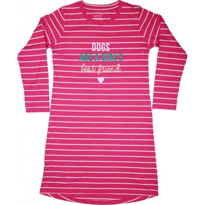 Dívčí bavlněná noční košile Wolf s potiskem. Složení: 100 % bavlna proužkovaná + potiskk kulatý výstřih dlouhý rukáv ve skutečnosti moc krásná rozměry: vel. 134: Délka 78 cm,...