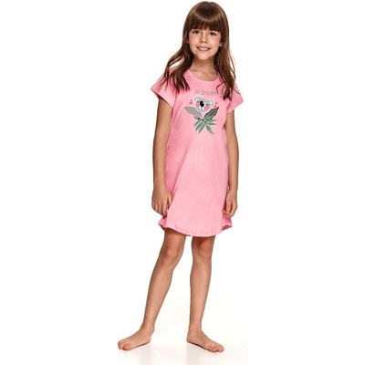 Dívčí noční košile s krátkým rukávem je zdobená tiskem. 100% bavlna