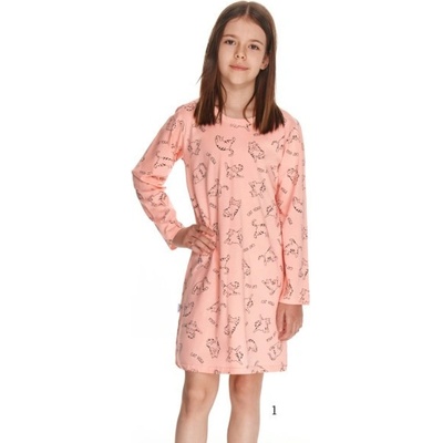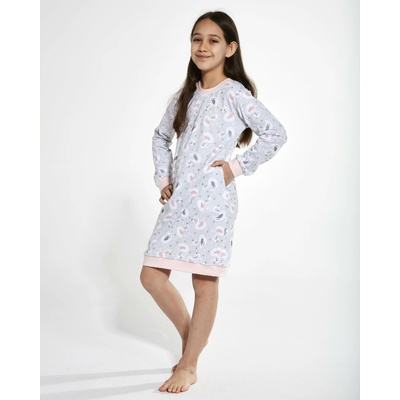 Vzorovaná dětská noční košile, s dlouhým rukávem. Dětská noční košile, s kočičím vzorem, po celé noční košili.