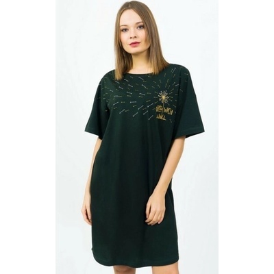 Tmavězelená noční košile, s krátkým rukávem, okrouhlý výstřih. Na hrudi obrázek rozfouklé pampelišky, s nápisem: Wish. Vhodná i na běžné denní nošení.