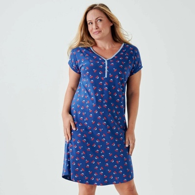 Noční košile ze směsi bavlna/modal se příjemně nosí. Kulatý výstřih. Krátké rukávy. Barevný exkluzivní potisk. Postranní rozparky. Zakončení prošitím. Rovný spodní lem. Standard...