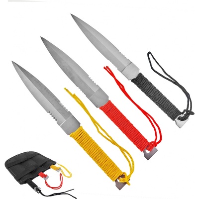 Vrhací nože v pouzdře 3 ks 3 vrhací nože s nylonovou omotávkou. Součástí balení je pouzdro pro všechny tři nože. Každý z nožů měří 19 cm a jsou zakončeny opravdu ostrou...
