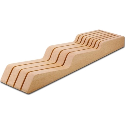 Organizér na nože z bukového dřeva.Pohodlný a bezpečný způsob, jak mít uložené nože.Ideální do zásuvky kuchyňské linky.Vhodný na 7 kusů nožů. 4 malé nože a 3 velké nože max. do...
