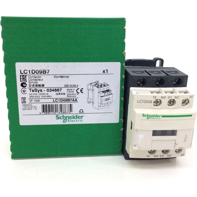 Schneider LC1D09E7 stykač z řady TeSys s ovládacím napětím 48 V AC (50/60 Hz). Hlavní obvod se připojuje šroubově; provozní proudy jsou 9 A (AC-3, 400 V), 25 A (AC-1, 400 V) a...