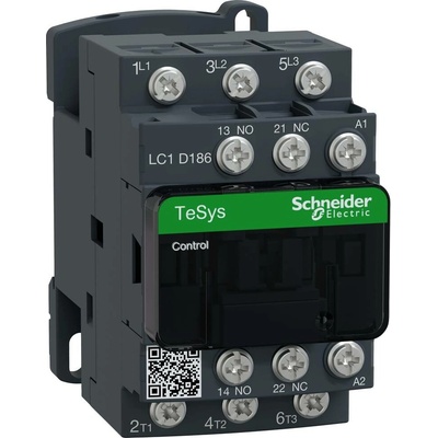 Výkonový stykač TeSys LC1D. 3 póly, 3 rozpínací kontakty. Přídavné pomocné kontakty - 1 NO kontakt + 1 NC kontakt, jmenovitý provozní výkon při AC-3, 400 V 18,5 kW, jmenovitý...