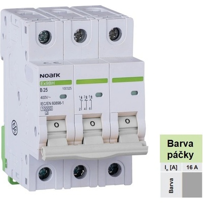 Jistič Noark 10kA Ex9BH 3P C16 • Instalační jističe splňující požadavky IEC / ČSN EN 60898-1 • Jmenovitá zkratová vypínací schopnost 10 kA • Vypínací charakteristika C • Vhodné pro domovní i průmyslové aplikace • Široká nabídka příslušenství • Barevné páčky dle...