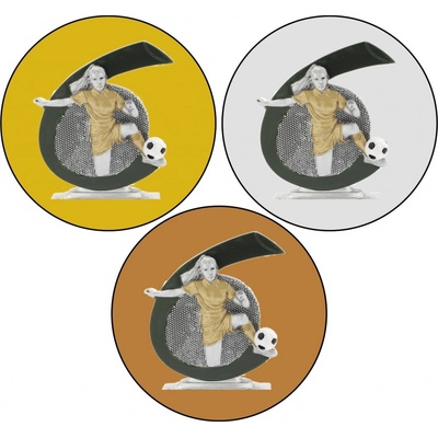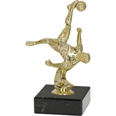 Soška NOHEJBAL V povrchu zlatá lesk, výška s mramorem 16,5cm.Podstavec mramor 53x20mm.Štítek s maximální velikostí 47x13cm.Soška bez emblému.
