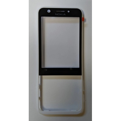 Náhradní přední kryt se sklíčkem displeje určený pro mobilní telefony Nokia 230 v bílém provedení - vhodný pro stříbrnou variantu mobilního telefonu.