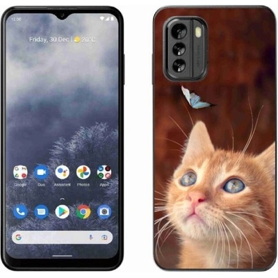 Skvělá cena, dokonalá ochrana Vašeho telefonu proti poškrábání. Gelový kryt mmCase na mobil Nokia G60 5G - motýl a kotě