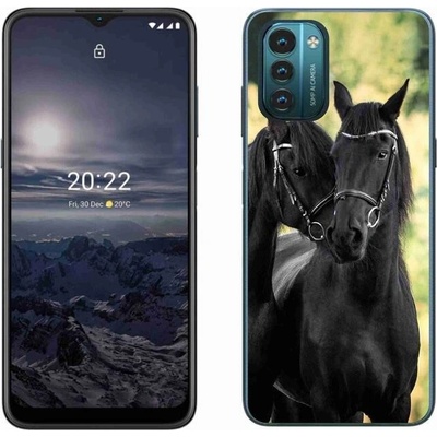 Za super cenu perfektně ochrání záda a obvod Vašeho telefonu. Gelový kryt mmCase na mobil Nokia G11/G21 - dva černí koně