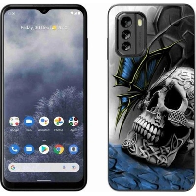Skvělá cena, dokonalá ochrana Vašeho telefonu proti poškrábání. Gelový kryt mmCase na mobil Nokia G60 5G - motýl a lebka