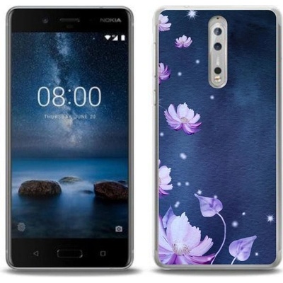 Kvalitní gelové pouzdro mmCase na mobil Nokia 8 - fialový květ za super cenu!