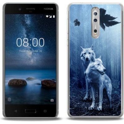 Kvalitní gelový kryt mmCase na mobil Nokia 8 - vlci v lese za super cenu!