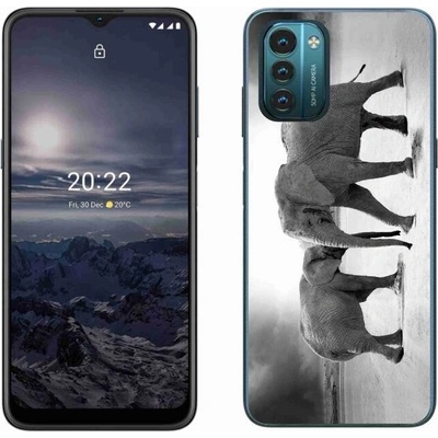 Za super cenu perfektně ochrání záda a obvod Vašeho telefonu. Gelový kryt mmCase na mobil Nokia G11/G21 - černobílí sloni