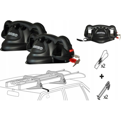 Zámek lyží. Zámek nosiče. Vhodné pro - 2 páry lyží a 4 hůlky. Nízká hmotnost. Praktické balení. Rychlá instalace na střechu vozidla bez nutnosti nářadí.