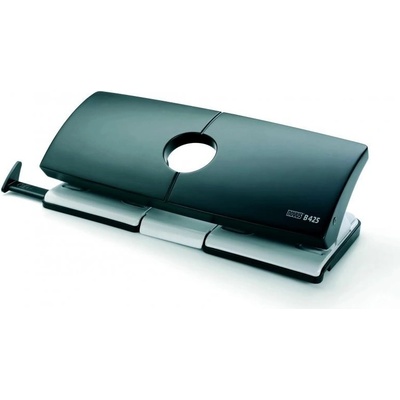 Bloková děrovačka B 425. Dvojitá celokovová bloková děrovačka. Čtyřnásobné děrování. Vybavena posuvným pravítkem pro DIN děrování. Aretace horního dílu pro úsporu místa při ukládání. Kapacita: 25 listů (80 g/m2) Rozteč děr: 80 x 80 x 80 mm. Průměr otvoru: 5,5 mm....