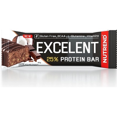 Vlastnosti NUTREND Excelent 25% Protein Bar 40g PROTEINOVÁ TYČINKA: - Zdroj cenných bílkovin (25% obsahu tyčinky) - Vysoký obsah sacharidů - Obsahuje L-glutamin a větvené aminokyseliny (BCAA), které podporují svalovou sílu a vytrvalost - Vitamíny skupiny B - K...