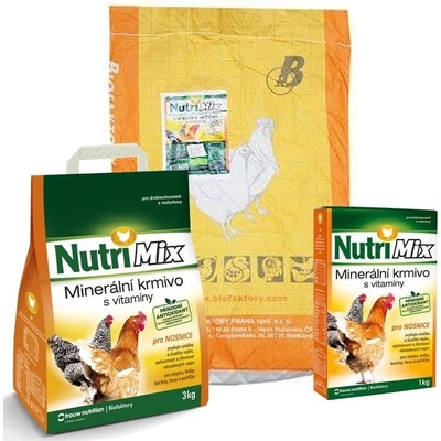 Minerální krmivo s vitaminy pro nosnice. Vitamino-minerální směs NUTRI MIX je určena pro drobnochovatele a malochovy. Přidává se do krmné dávky drůbeže, kterou tvoří převážně obilné šroty, kuchyňské zbytky a další domácí krmiva.
