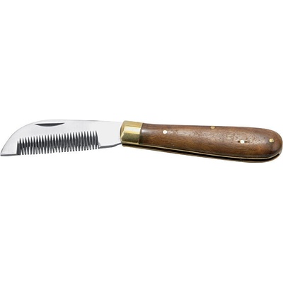 Nůž na seřezávání hřívy vyrobený z kvalitní oceli s rukojetí z pravého dřeva.