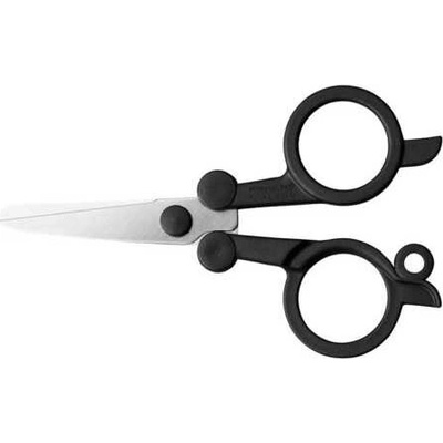 Skládací nůžky oceníte hlavně při cestování. Dají se jednoduše složit, nezaberou moc místa a neporaníte se o ně. Do očka na rukojeti můžete provléct řetízek a nůžky si připnout...