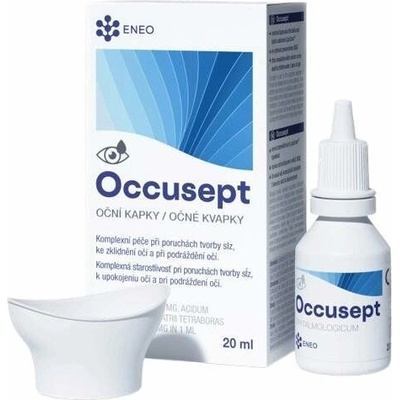 Oční kapky Occusept při poruchách tvorby slz a syndromu suchého oka, při akutním nebo chronickém zánětu spojivek neinfekčního původu, ke zklidnění při podráždění očí.