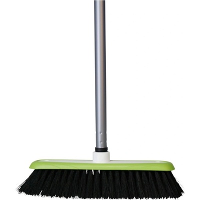 Zeleno-bílý OBI interiérový smeták z polypropylenu má obvodové pogumování a hodí se tak pro všechny podlahy. Smeták má rozměry 137 cm x 30 cm x 8 cm.