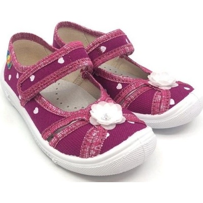 Dívčí baleríny Bighorn JITKA v námořnické modré s bílými srdíčky. Obuv je vyrobena z vysoce kvalitní bavlny. Podešev je vyrobena z pružného PVC, díky kterému je celá obuv...