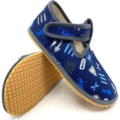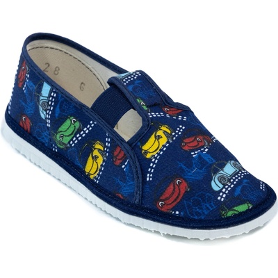 Nový barefoot model Beda bačkor BFN 170020/W ) s vylepšeným střihem horní části (svršku) pro lepší dotažení v oblasti kotníku. Vzor Cars/ auta - v modré barvě s motivem auta V...
