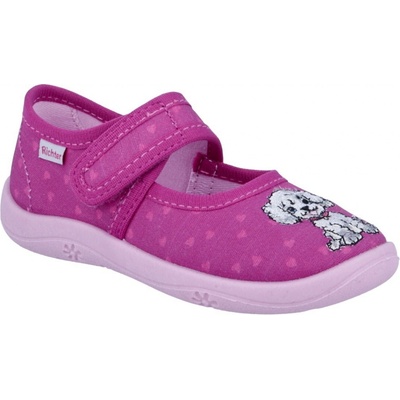 Textilní dívčí balerínkové bačkůrky se zapínáním na suchý zip. Lehké, krásně ohebné, provětrávané do podešve. S vyjímatelnou koženou stélkou. Země původu: Polsko Střední střih...