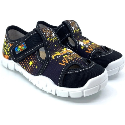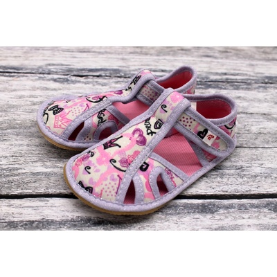 Dětské bačkůrky, sandálkového střihu s uzavřenou špicí se zapínáním na "suchý zip. Tvar špičky s důrazem na typicky dětský dominantní paleček zajišťuje dostatečný prostor pro...