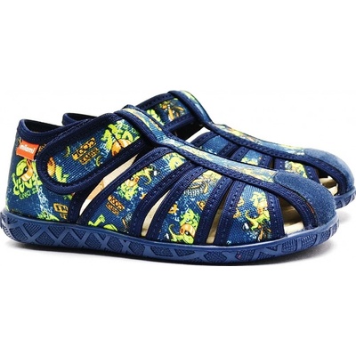 Dětské papuče, sandálkového střihu s otevřenou špicí se zapínáním na "suchý zip". Tvar špičky s důrazem na typicky dětský dominantní paleček zajišťuje dostatečný prostor pro...